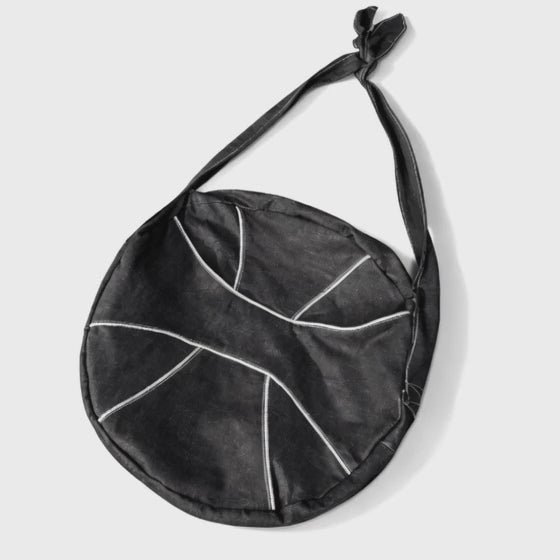 Denim cross body bag with cross shaped zippers equipped with 4 exterior pockets
